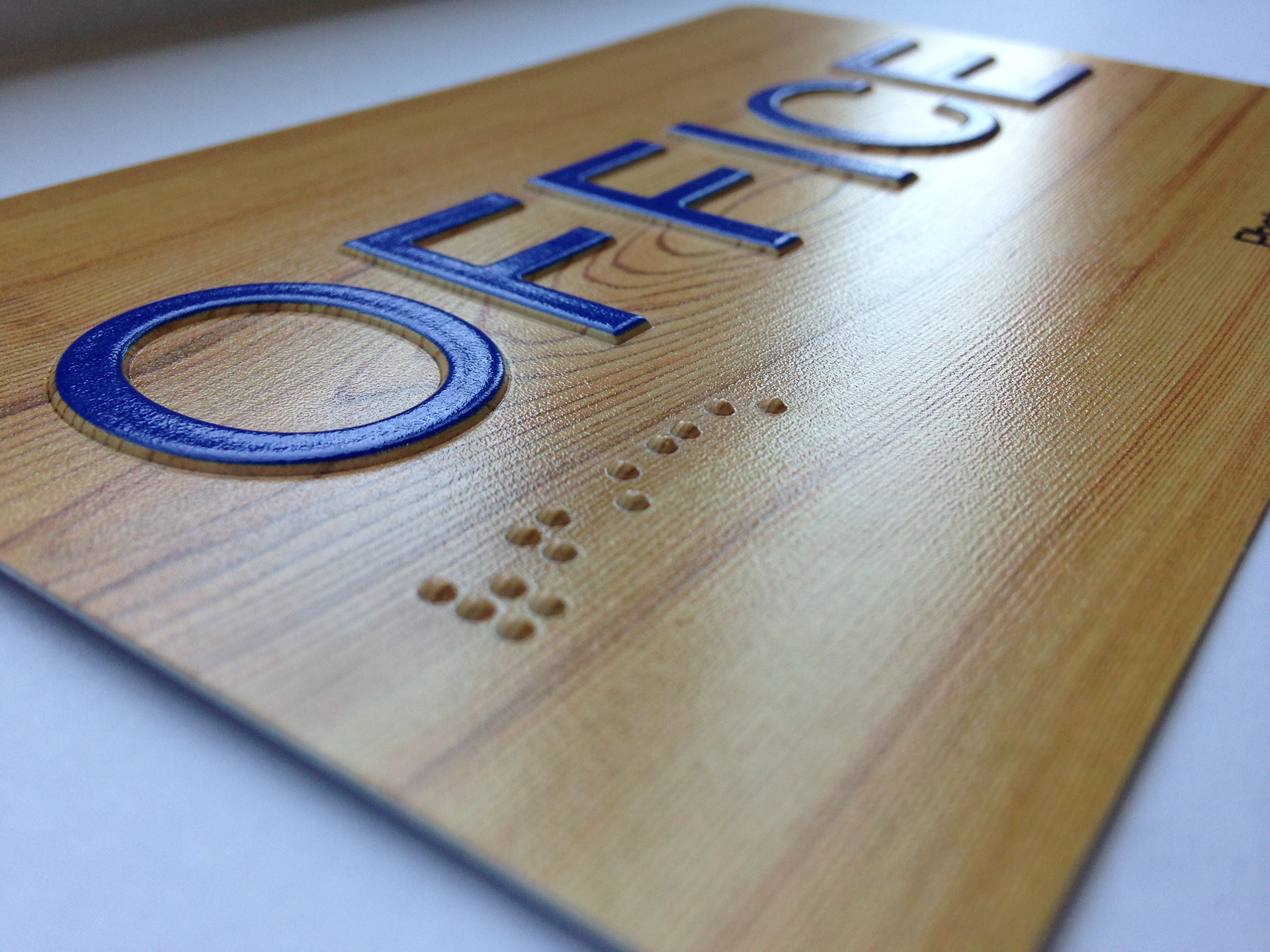 Accumulating UV clear or white ink to form raised, tactile characters and Braille dots, essential for public and corporate environments.